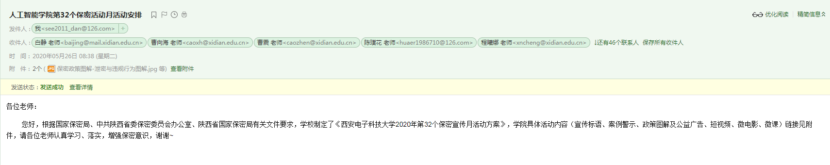 此外,万象城awcsport官网还制作了宣传标语、案例警示和系列学习资料清单,以展板、邮件、微信、学院网站和走廊电子屏幕等多种形式发布保密宣传教育相关信息,全方位向全体教师和广大学生推送保密提醒。