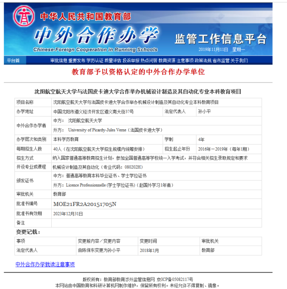机械设计制造及其自动化中法合作办学项目为beat365在线唯一官网与法国皮卡迪大学合作举办的3+1本科教育项目,于2015年经国家教育部批准(批准书编号:MOE21FR2A20151705N)。网站链接:http://www.crs.jsj.edu.cn/aproval/getbyarea/21双方整合优质的教育教学资源,共同商定教学计划,旨在培养适应现代科学技术与经济社会发展需要,拥有先进技术和管理理念,国际沟通能力较强的应用型、创新型、国际化专业人才。