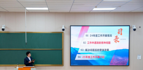 然后学生干部代表分别就学风建设、学业发展、养成教育、公寓建设、科创竞赛、文体活动、团建工作、宣传工作做2024年工作汇报及2025年工作计划。