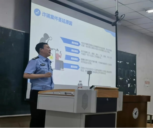冯警官首先针对大学生容易受骗的案件类型进行分析,并为大家介绍如何识破并防范这类电信诈骗,同时利用真实生动的案例从案件状态、犯罪成本、罪犯心态等方面对电信诈骗进行全方位的解析。最后,冯警官又为大家普及了相关的法律知识。