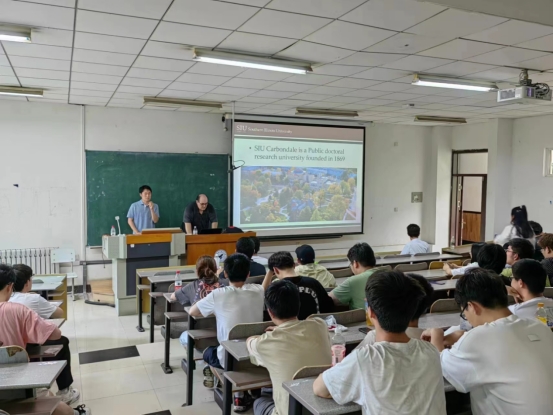 2023年7月10日,beat365在线唯一官网中美联合培养项目学校——美国南伊利诺伊大学卡本代尔分校Sam教授莅临beat365,向中美项目班同学介绍了南伊利诺伊大学卡本代尔分校校园概况、留学南伊利诺伊的相关要求以及跨文化交流的重要意义。