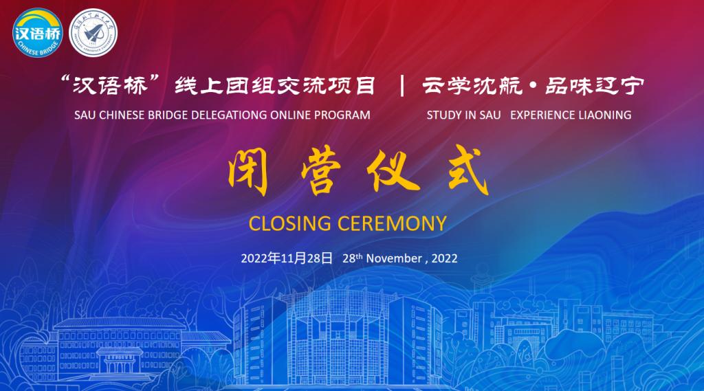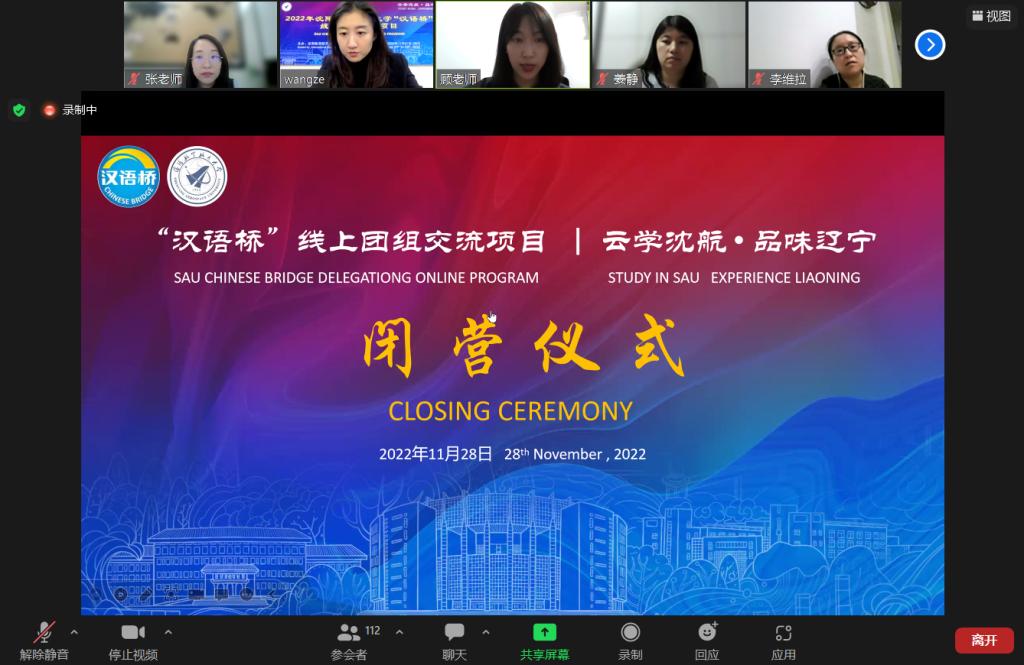 2022年11月28日,由教育部中外语言交流合作中心主办,beat365在线唯一官网承办的2022年“汉语桥”线上团组交流项目——“云学沈航 品味辽宁”冬令营顺利闭营!beat365在线唯一官网汉语教师王泽主持了本次闭营仪式。