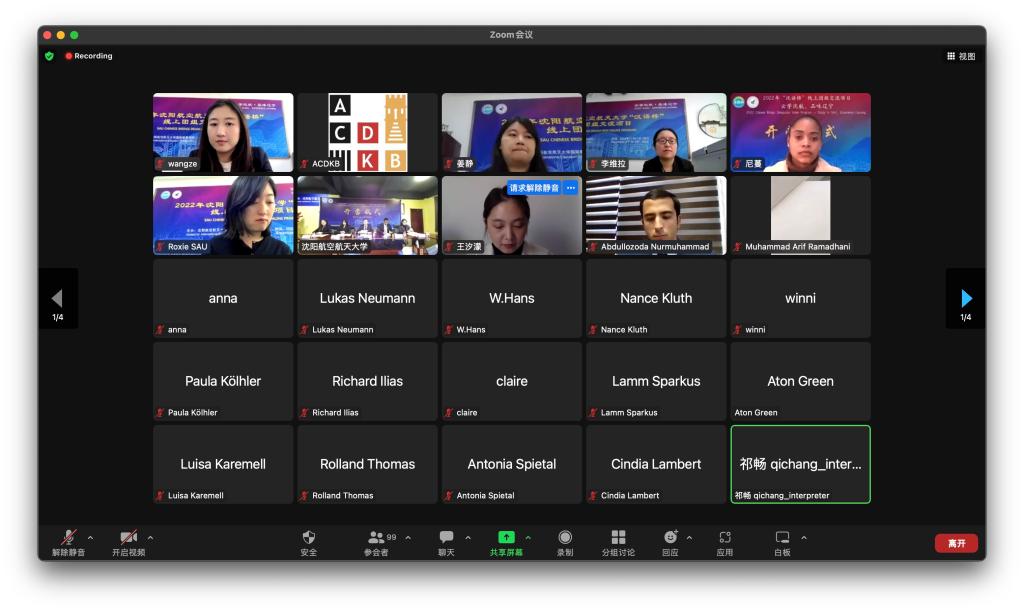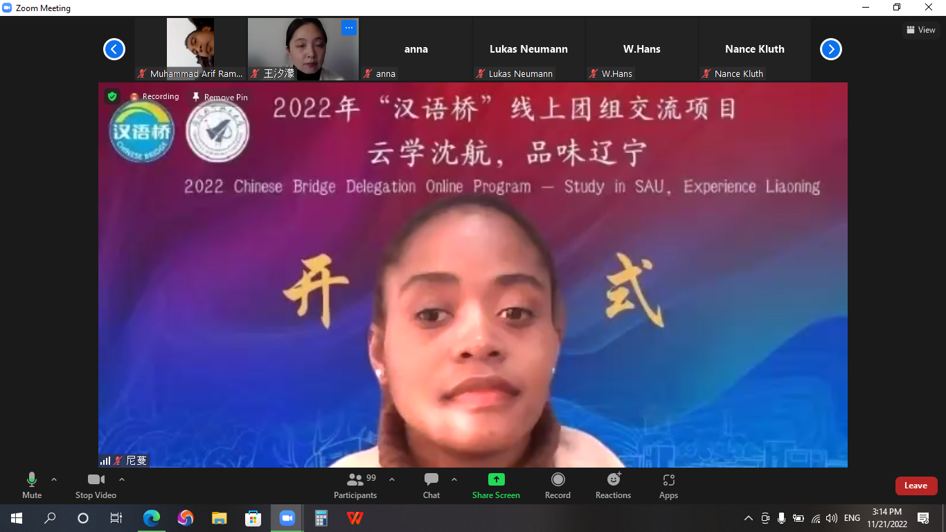 beat365在线唯一官网2022年“汉语桥”线上团组交流项目“云学沈航•品味辽宁”开营仪式