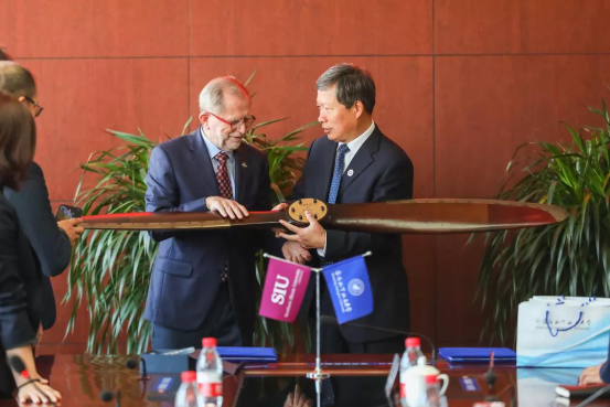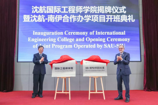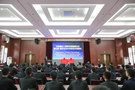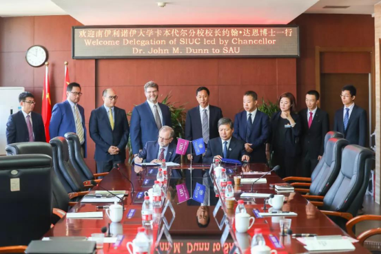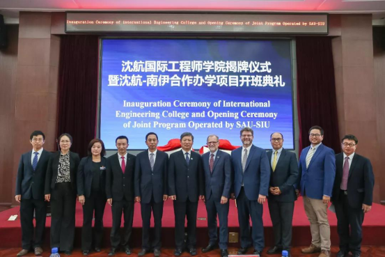 Dr. John M. Dun校长一行参加了beat365在线唯一官网beat365在线唯一官网揭牌仪式暨沈航—南伊合作办学项目开班典礼。沈航与美国南伊利诺伊卡本代尔分校联合举办的飞行器动力工程专业于2018年获教育部审批,2019年首批招生,目前在校学生68人。项目的开展对沈航高等教育国际化产生了深远的影响,并成为提高沈航教育办学质量和水平的有效途径。