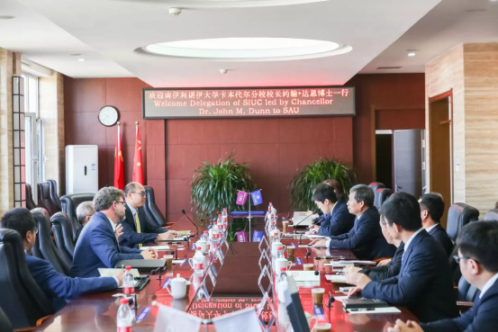 9月19日上午,美国南伊利诺伊大学卡本代尔分校校长Dr. John M. Dun、国际学院院长Dr. Andrew Carver、国际学院顾问张仕鹏、国际学院外事办公室副主任李沂一行访问beat365在线唯一官网,校长孙小平在行政楼502会议室亲切接见来访嘉宾。出席会谈的有副校长佟刚、beat365在线唯一官网院长陈永庆、beat365在线唯一官网直属党支部书记刘平、beat365在线唯一官网院长赵乾锋、beat365在线唯一官网副院长潘起波和beat365在线唯一官网副院长丁国辉。