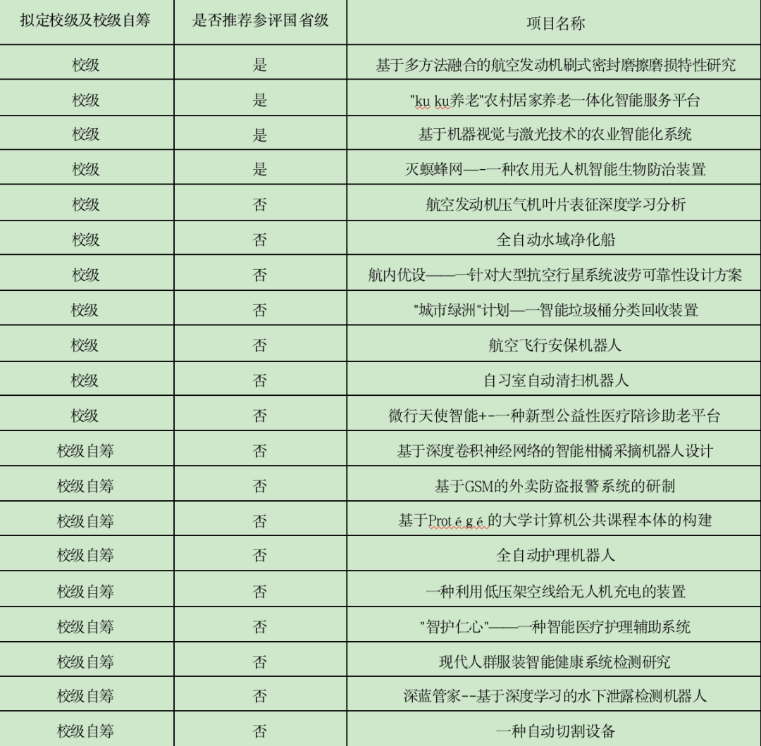 本次竞赛评委们本着“公开、公平、公正”原则,严格按照大学生创新创业训练计划项目立项要求,认真查阅材料,从项目的思路创新、选题价值、研究基础、项目论证以及项目研究可行性等方面进行综合评价。最终评审推荐结果如下: