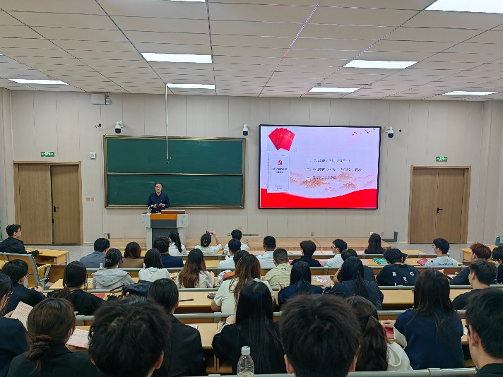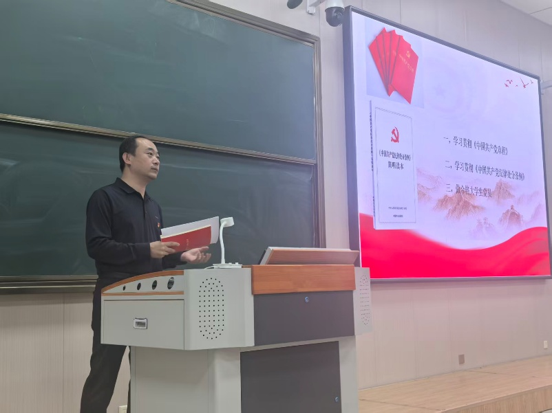 大会伊始,学院党委书记季志刚做专题党课,他以党章为根本遵循,围绕三大核心内容展开深入讲解。季书记先是带领全体党员重温党章核心要义,强调党章作为党的总章程,是党员行为的根本准则,需时刻牢记于心、外化于行;随后解读《中国共产党纪律处分条例》,阐明纪律红线不可触碰,引导党员知敬畏、存戒惧、守底线;最后聚焦“如何做好一名大学生党员”,从锤炼思想、精进学业、服务同学、责任担当等方面提出要求,鼓励大学生党员以高标准严格要求自己,在校园生活中发挥先锋模范作用。