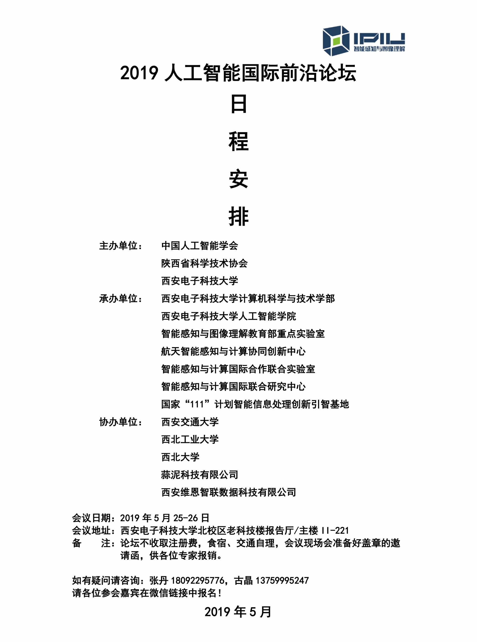 【5.21更新】2019人工智能国际前沿论坛日程安排(内含报名链接)