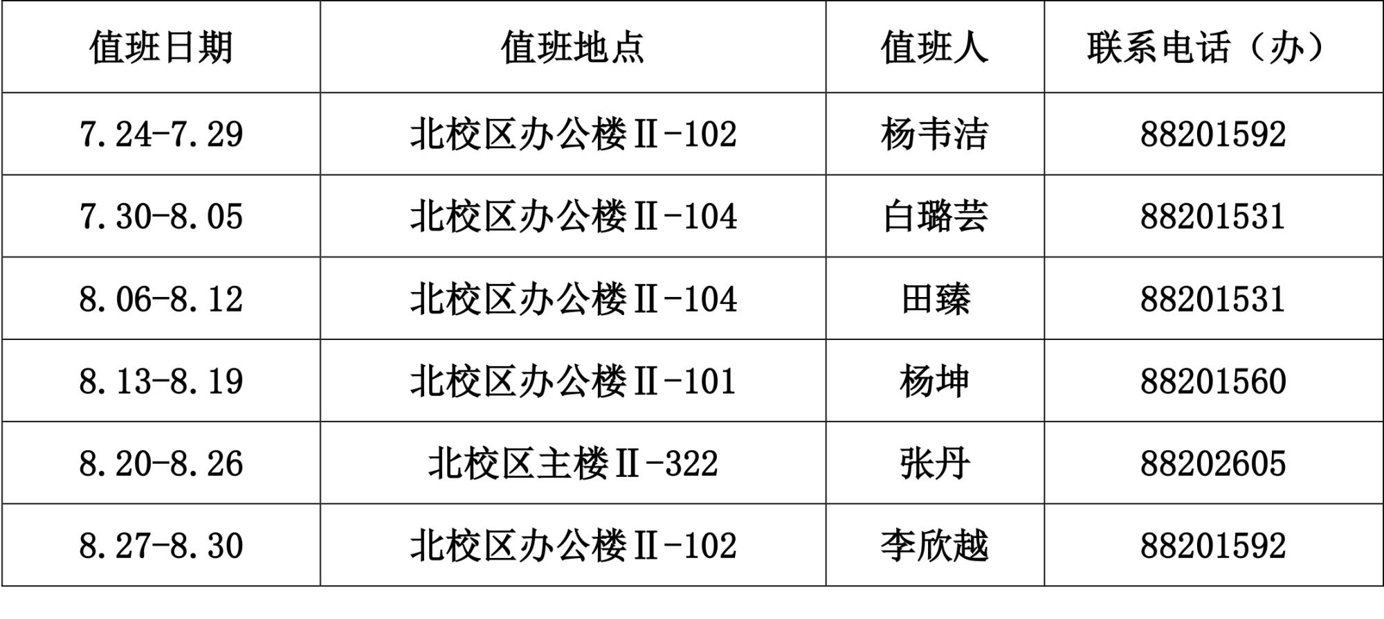 【暑期值班】万象城awcsport官网暑假值班安排表