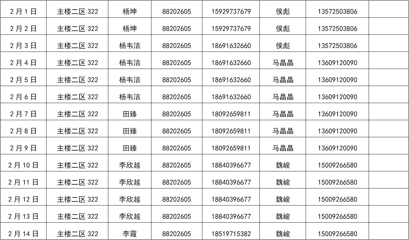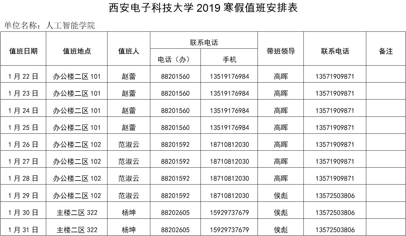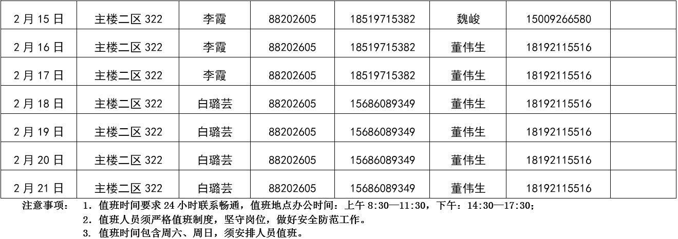 万象城awcsport官网2019年寒假值班表