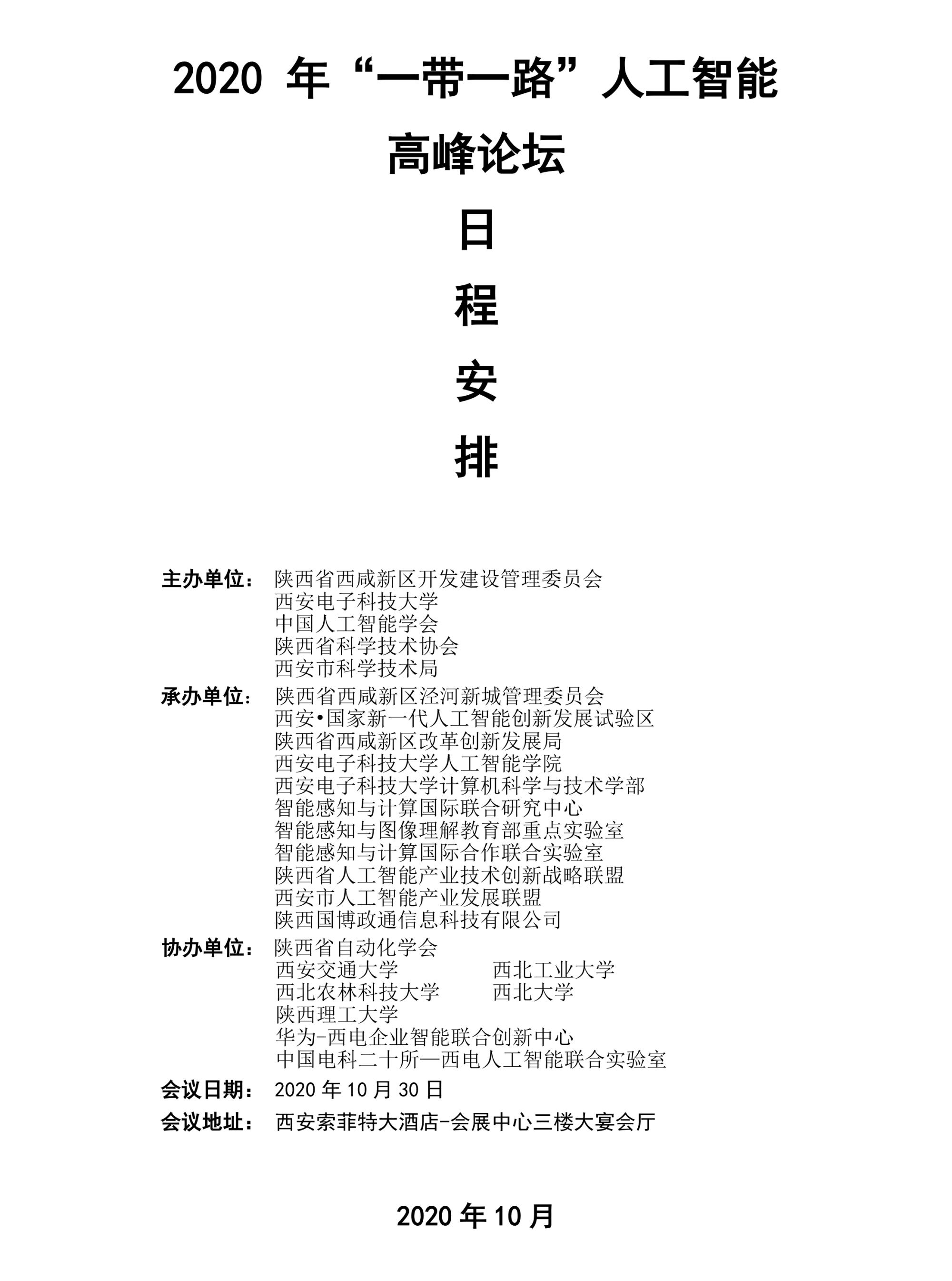 [10月30日] 2020年“一带一路”人工智能高峰论坛日程安排