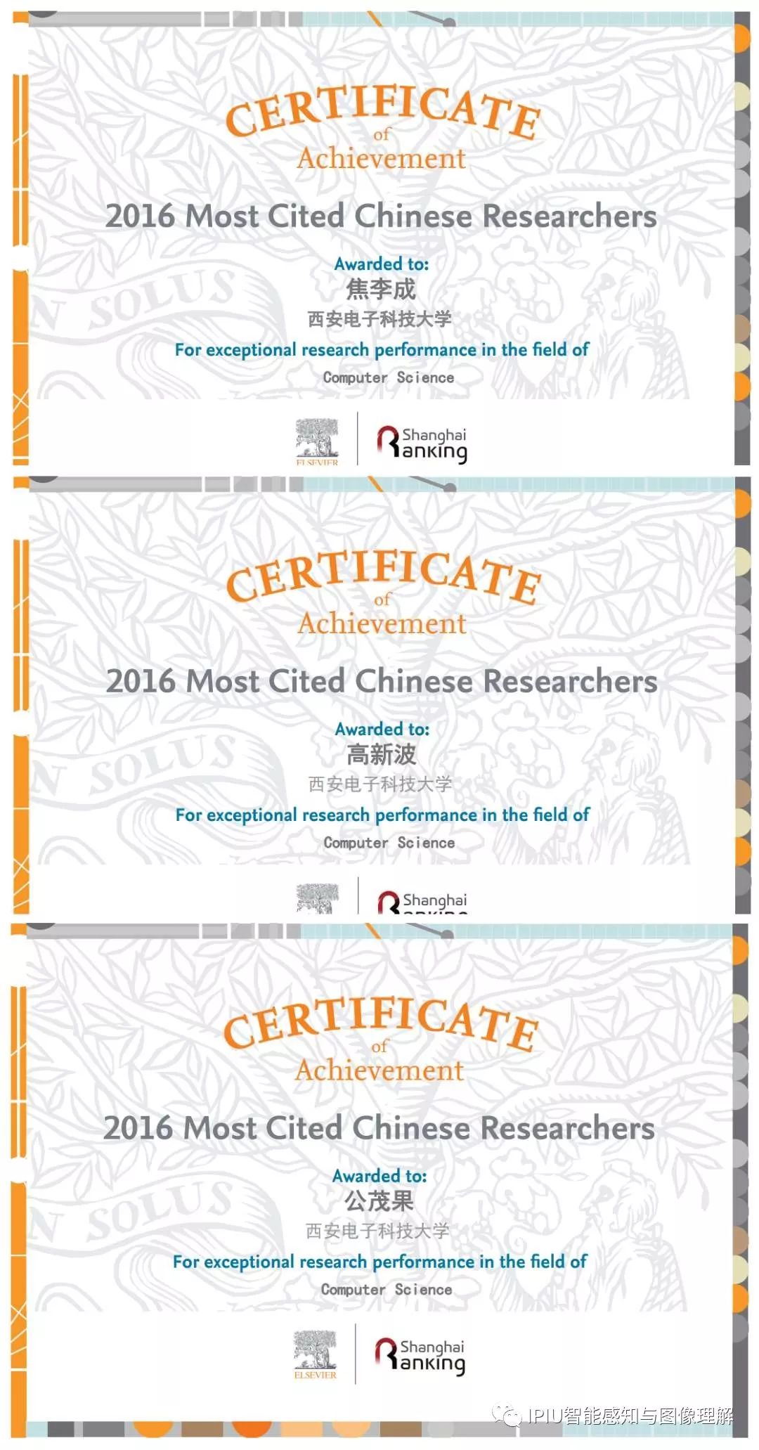 2017年2月27日,万象城awcsport官网7位教授入选爱思唯尔发布的“2016年中国高被引学者(Most Cited Chinese Researchers)榜单”,智能感知与图像理解教育部重点实验室焦李成教授、高新波教授和公茂果教授占据三席,且这已是三位教授连续三年入选该榜单。