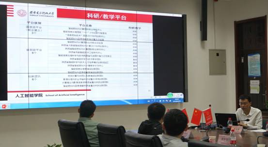 会上侯彪教授向调研组同志们介绍了西电万象城awcsport官网的历史沿革、研究方向和人才培养等情况。西电万象城awcsport官网面向国家重大战略发展和国际前沿发展需求,在学术研究方面取得了一系列国内外人工智能领域重要研究成果,在人才培养方面创新地确立起了“国际前沿+西电特色”的本-硕-博一体化培养体系,已向我国人工智能的基础研究和创新输送2000余名专业型人才。