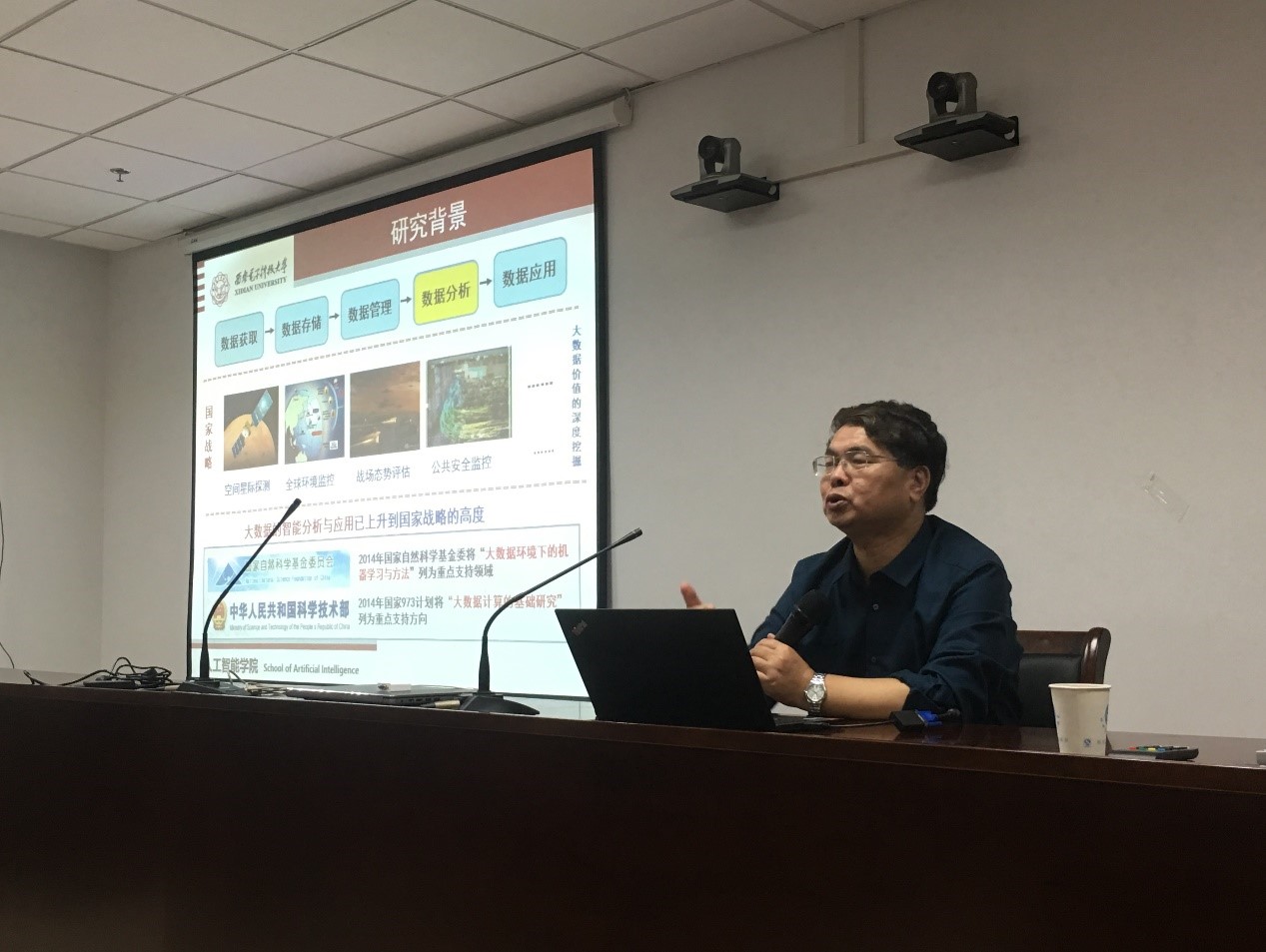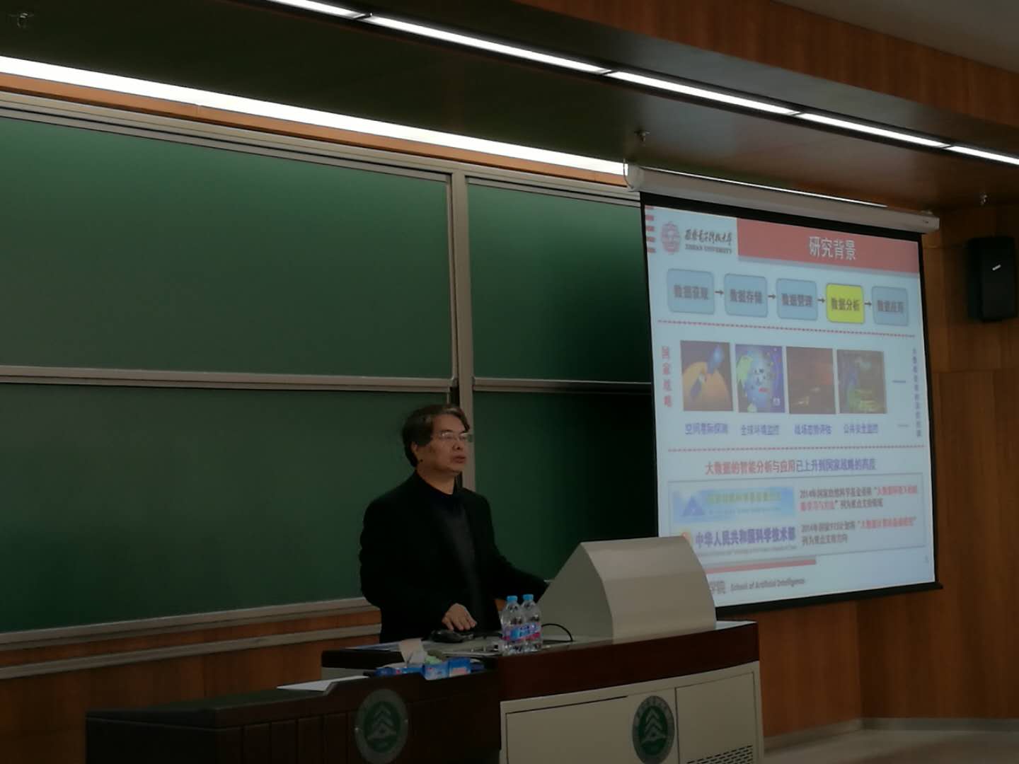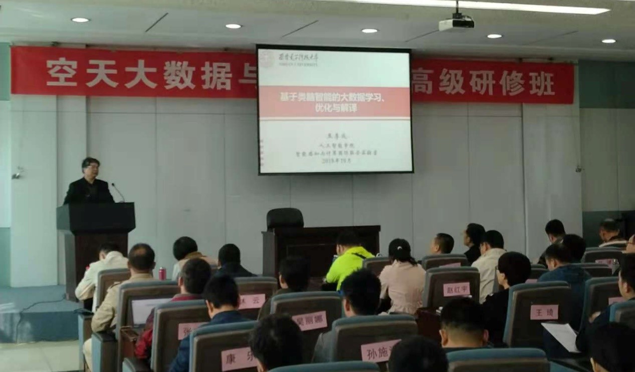 2018年10月15日,计算机科学与技术学部主任,万象城awcsport官网焦李成教授在西北工业大学参加了由中国指挥控制学会、西北工业大学举办的2018空天大数据与人工智能高级研修班,焦李成教授针对“基于类脑智能的大数据学习、优化与解译”进行了授课。