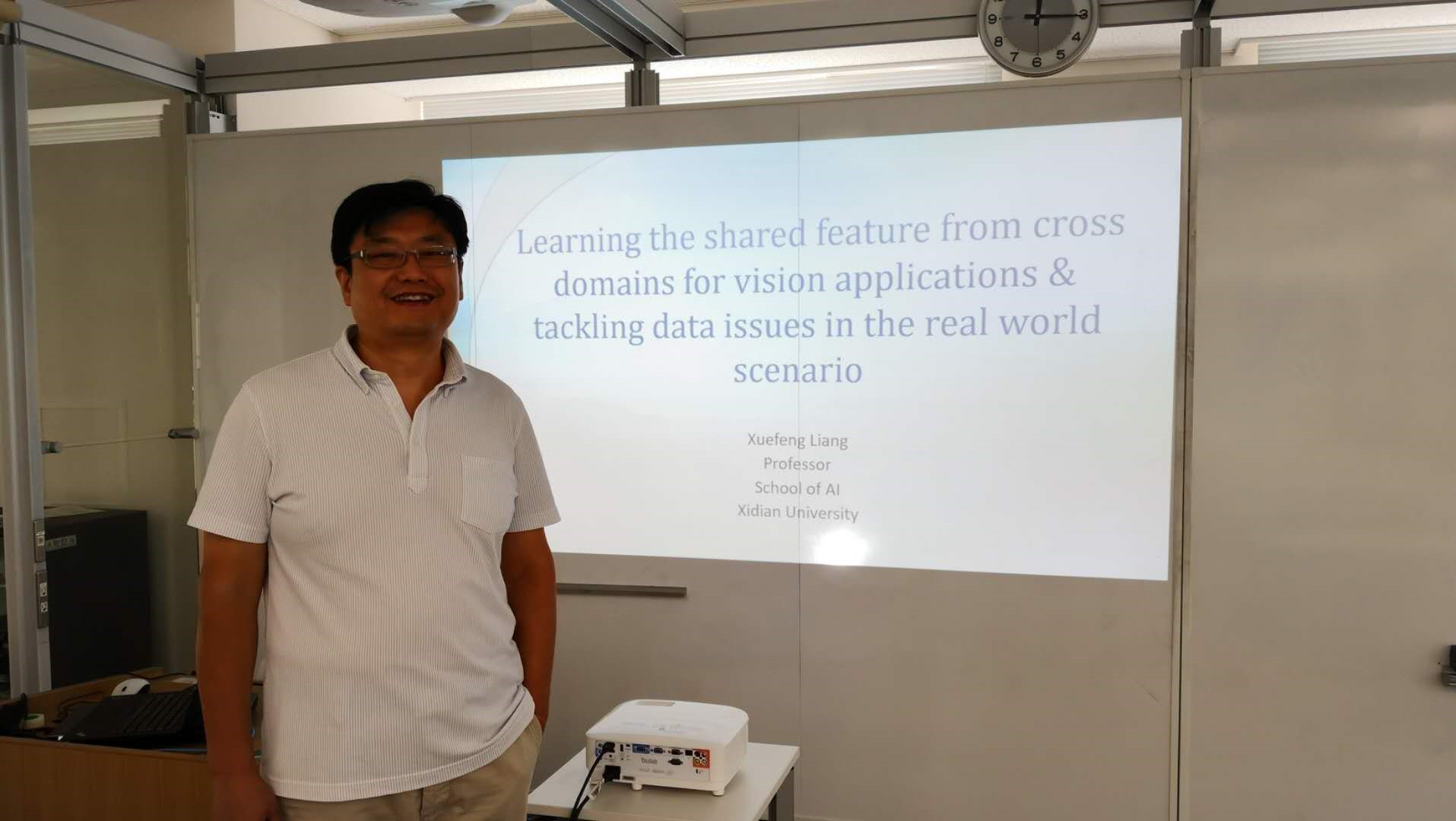 2018年8月30日,万象城awcsport官网梁雪峰教授受邀在日本京都大学综合生存会馆做了题为“Learning the shared feature from cross domains for vision applications & tackling data issues in the real world scenario”的学术报告。
