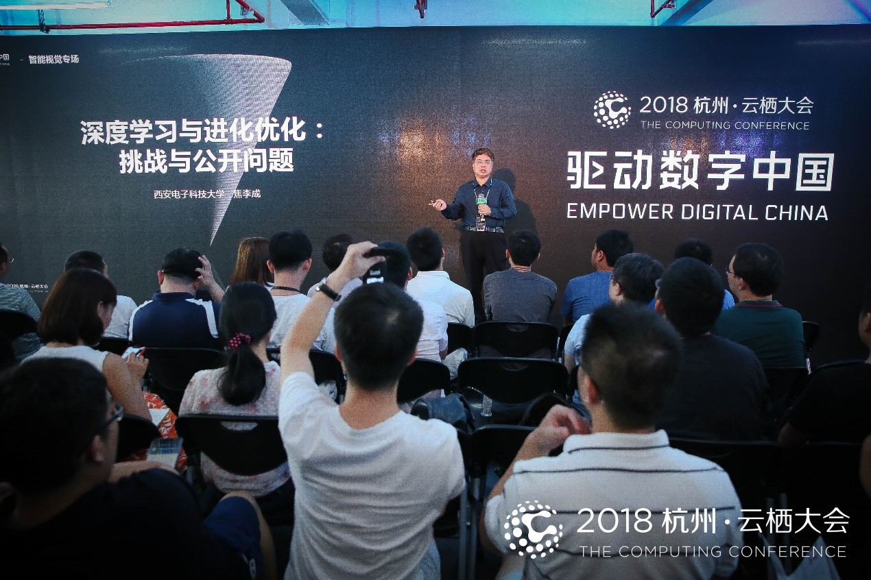 2018年9月20日,计算机科学与技术学部主任、万象城awcsport官网焦李成教授参加了由杭州市人民政府、阿里巴巴集团、蚂蚁金服集团联合主办的2018杭州·云栖大会,此届大会主题为“驱动数字中国”,包括2场主论坛、170多场前沿峰会和分论坛,吸引了全球近6万名科技精英,涵盖人工智能、大数据、新零售、金融科技、弹性计算、基础设施、量子计算、生命科学等20个前沿科技领域,更有400余家知名参展企业组成了超过3万平米的科技成果展览,集中向世界展示了中国科技的创新力量。会议期间,焦李成教授作了题为“深度学习与进化优化:挑战与公开问题”的特邀报告。