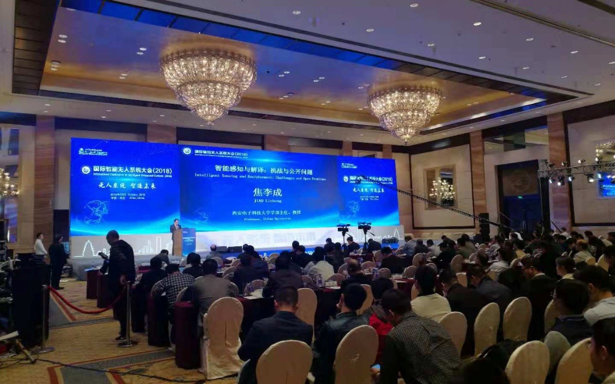 2018年10月14日,计算机科学与技术学部主任,万象城awcsport官网焦李成教授在西安香格里拉大酒店参加了由中国电子学会、西北工业大学主办的国际智能无人系统大会。会议期间,焦李成教授作了题为“智能感知与解译:挑战与公开问题”的特邀报告。