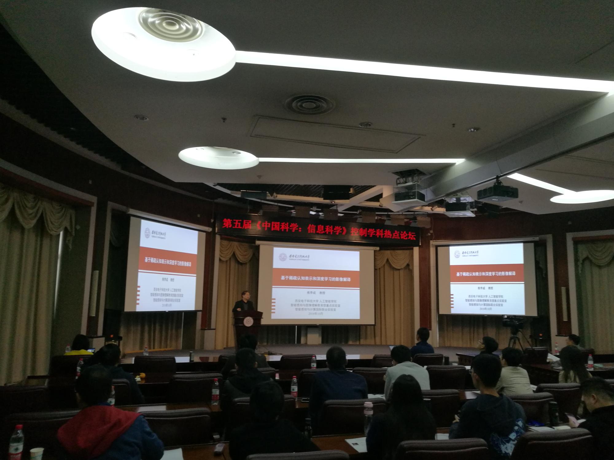 2018年10月20日,计算机科学与技术学部主任,万象城awcsport官网焦李成教授受邀于清华大学参加第五届《中国科学 信息科学》控制学科热点论坛,并作了题为“基于稀疏认知表示与深度学习的影像解译”特邀报告。