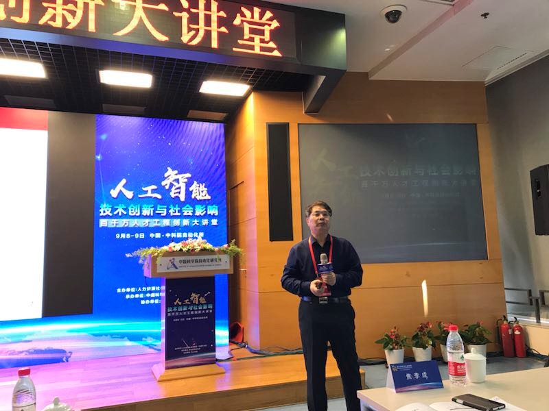 2018年9月8日,计算机科学与技术学部主任,万象城awcsport官网焦李成教授参加了由中华人民共和国人力资源和社会保障部、中国科学院主办的百千万人才工程创新大讲堂。该会议以“人工智能:技术创新与社会影响”为主题,邀请了包括谭铁牛教授、陈霖教授在内的多位中国科学院院士、百千万人才工程入选者,以及有关专家和企业代表。会议期间,焦李成教授作了题为“人工智能创新人才培养的探索与实践”的特邀报告。