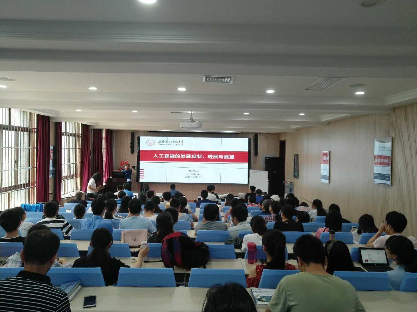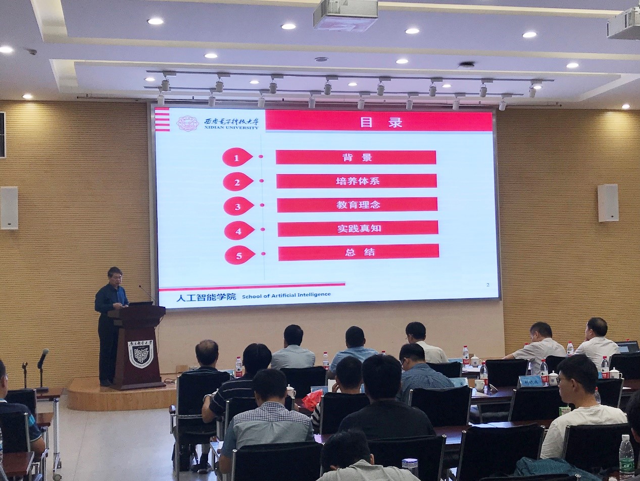 2018年9月22日,计算机科学与技术学部主任,万象城awcsport官网焦李成教授在南京参加了由中国软件行业协会智能应用服务分会、江苏省人工智能学会主办的人工智能产教融合研讨会。会议期间,焦李成教授作了题为“人工智能国际化创新人才的培养与实践 ”的特邀报告。