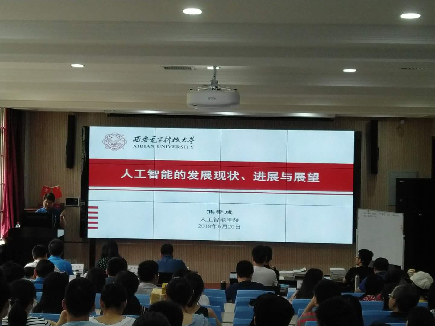 2018年7月28日,焦李成教授等一行参加了2018年上海交通大学深度学习理论前沿研讨会,焦李成教授进行了题为“基于类脑智能的遥感影像解译”的报告,杨淑媛教授进行了题为“深度特征学习与应用”的报告。