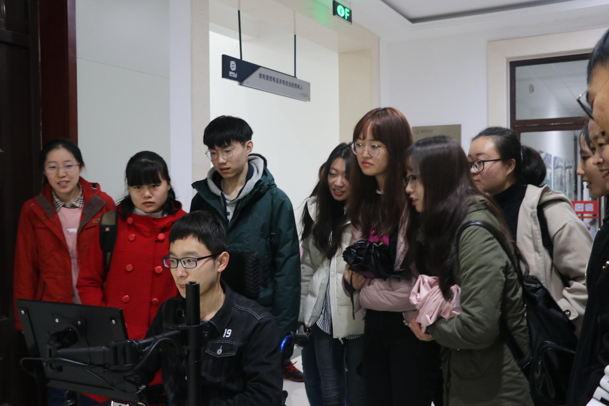 交流报告结束后,计算机科学学院的师生在西电万象城awcsport官网各位老师及博士研究生的带领下,对万象城awcsport官网进行了分组参观交流,参观了智能视频分析与识别实验室,体验了“颜值魔镜”、“裸眼3D”、“五子棋自动对弈机器人”、“渐冻人智能轮椅辅助系统”等基于人工智能技术的研发成果等。在活动中,同学们对人工智能在现实生活中的应用表现出了极大的兴趣和热情,纷纷表示通过本次访学交流活动受益颇多,立志于从事人工智能领域的研究。