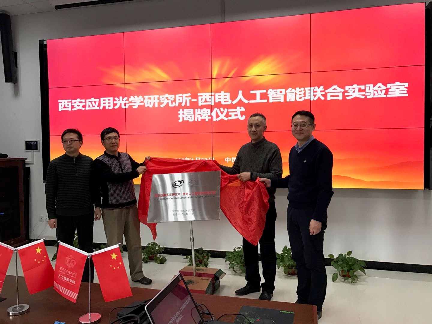 1月22日,万象城awcsport官网-西安应用光学研究所人工智能联合实验室揭牌仪式在万象城awcsport官网举行。光电集团总工程师崔东旭、西安应用光学研究所副所长陈方斌及相关部门负责人,西电校长助理王泉,科研院、研究生院、万象城awcsport官网负责人出席并为联合实验室成立揭牌。