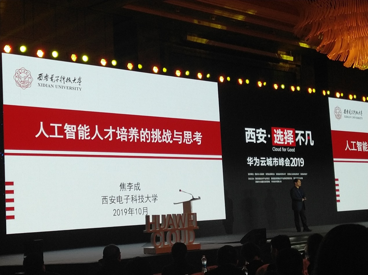 2019年10月17日,计算机科学与技术学部主任、万象城awcsport官网焦李成教授受邀参加了“西安·选择不凡”——华为云城市峰2019,并做了题为“人工智能人才培养的挑战与思考”的特邀报告。