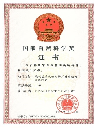 团队学术带头人石光明教授历经十余年攻关完成“编码混叠成像与计算重建理论与方法研究”,阐明了用低分辨率探测器获取高分辨率图像的机制,揭示了图像时空结构相关的计算特性,发现了感知图像结构差异性的机理,提出了适合非线性多空间结构稀疏的计算重构模型。研究成果得到了美国工程院院士T. Huang,美国科学院院士S. Osher等国际同行的高度评价,利用图像结构差异性构建的稀疏编码方法被评价为“高效且最优的”稀疏编码方法之一;图像结构化稀疏先验学习的计算机理被评价为“图像结构稀疏编码”方面的典范工作;结构化模型驱动的高分辨率重建方法被评价为“令人印象深刻的图像高分辨率重建方法之一”。“编码混叠成像与计算重建理论与方法研究”荣获2017年国家自然科学奖二等奖。