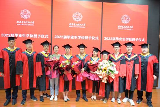 在激动人心的授位环节,首先由侯彪教授依次为校级优秀硕士学位获得者、本科优秀毕设论文获得者、本科优秀毕业生干部授位拨穗并颁奖。随后学院老师依次为毕业生颁授学位,执拨穗礼并合影留念,整个过程气氛热烈而不失庄严。