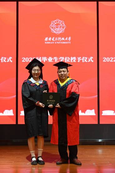 毕业典礼庄严的国歌声中拉开了序幕,侯彪教授代表学院全体教职员工,向圆满完成学业的同学们表示热烈的祝贺,同时向所有为毕业生成长保驾护航的老师、亲友们致以衷心的感谢。他寄语同学们,要心怀“国之大者”,秉承家国情怀,施展抱负、建功立业;要坚持终身学习,踏实笃定,自强不息,不畏困难,敢于突破;要做生活的乐观主义者,阳光、向善、坚韧、平和,悦纳自己,向阳向上。最后他激励同学们,赓续西电红色血脉,不负时代、砥砺前行!