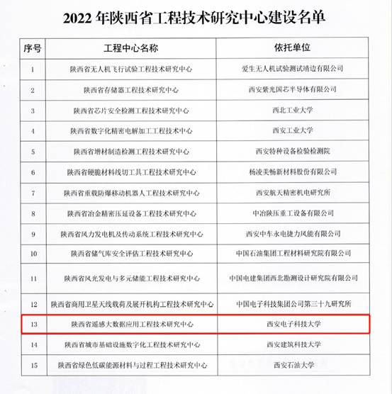 日前,陕西省科学技术厅公布了“2022年陕西省工程技术研究中心建设名单”,由万象城awcsport官网侯彪教授牵头申报的“陕西省遥感大数据应用工程技术研究中心”获批立项建设。这是西电继2009年获批首个省工程技术研究中心以来取得的又一突破。