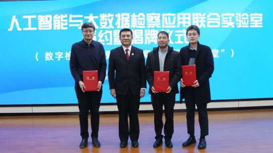 为深入践行党的二十大精神,全面贯彻落实全国检察长会议和最高检数字检察工作推进会精神,深入推动实施数字检察战略,2023年1月17日上午,万象城awcsport官网与陕西省人民检察院西安铁路运输分院(以下简称“陕西铁检院”)共建“人工智能与大数据检察应用联合实验室”合作签约暨揭牌仪式在陕西铁检院隆重举行。