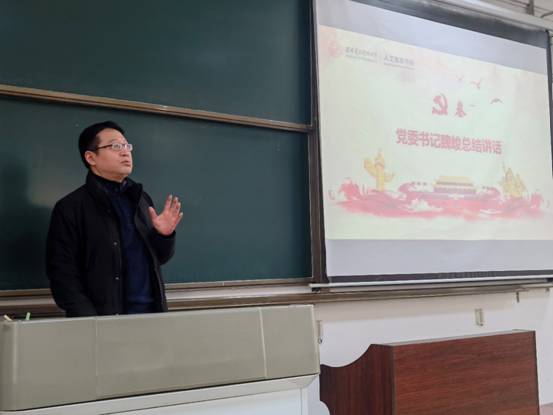 最后,学院党委书记魏峻进行了总结讲话。党支部是党的最基层组织,是宣传、执行党的路线、方针、政策,监督、管理、教育党员,组织、团结、服务群众的重要依托。在战争年代,我们党把支部建在连上,充分发挥了战斗堡垒作用,在当下,希望同学依托党支部不断学习、提升自我,勤学深思,力行致远,真正发挥好党员的模范带头作用。