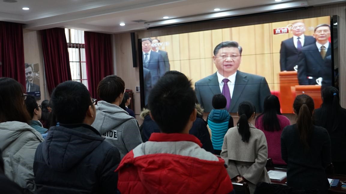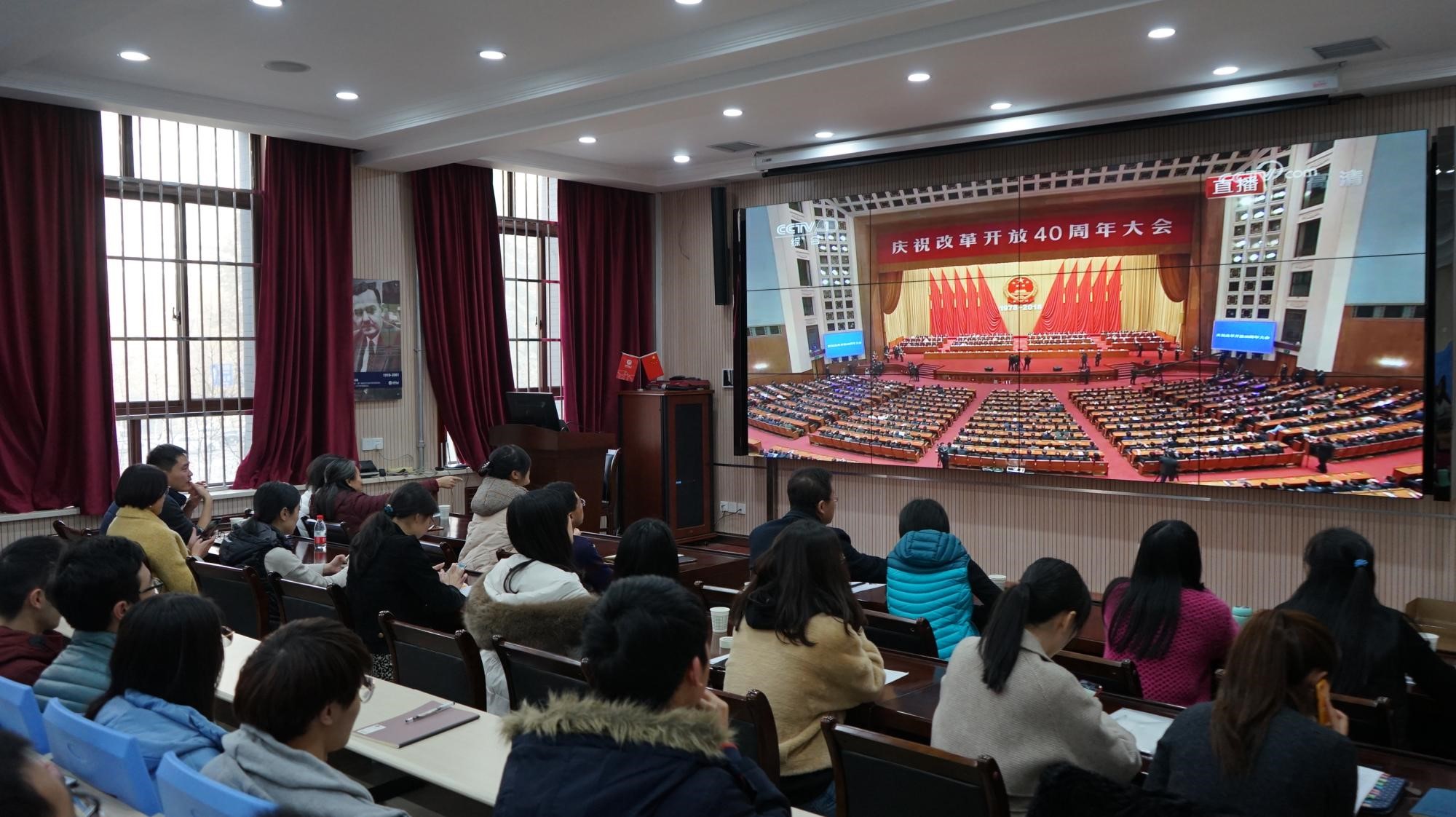 万象城awcsport官网组织干部师生观看庆祝改革开放40周年大会