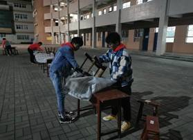 6日晚,经过近三个小时的长途跋涉,万象城awcsport官网9名志愿者提前来到蒲城县第三高中帮忙布置活动场地,为第二天的活动比赛能够顺利进行做充足的准备。