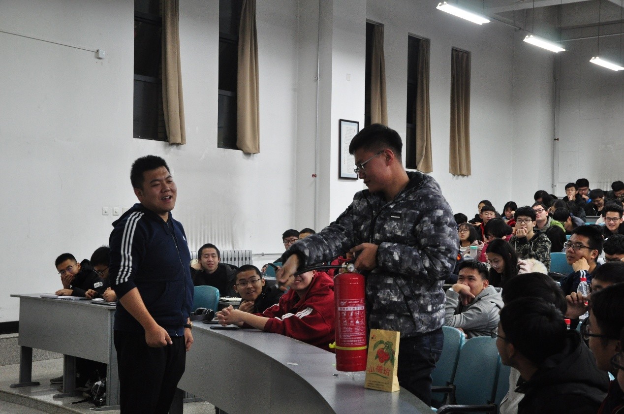在专题培训课上,肖老师采用PPT讲授+现场演示的方式进行授课,内容涉及广泛,包含:容易引发火灾的消防安全隐患;宿舍电器设施、设备正确使用方式;火情紧急情况处置;鉴别灭火器是否有效和正确的使用及灭火器材的使用方法;火灾应急疏散常识;宿舍必备灭火器材等。他还结合大量现实事故案例深刻剖析了火灾发生的根源,案例现场触目惊心画面,让每位同学切身感受到火灾的无情及掌握消防知识的必要性和重要性,极大增强了同学们自救自护能力。