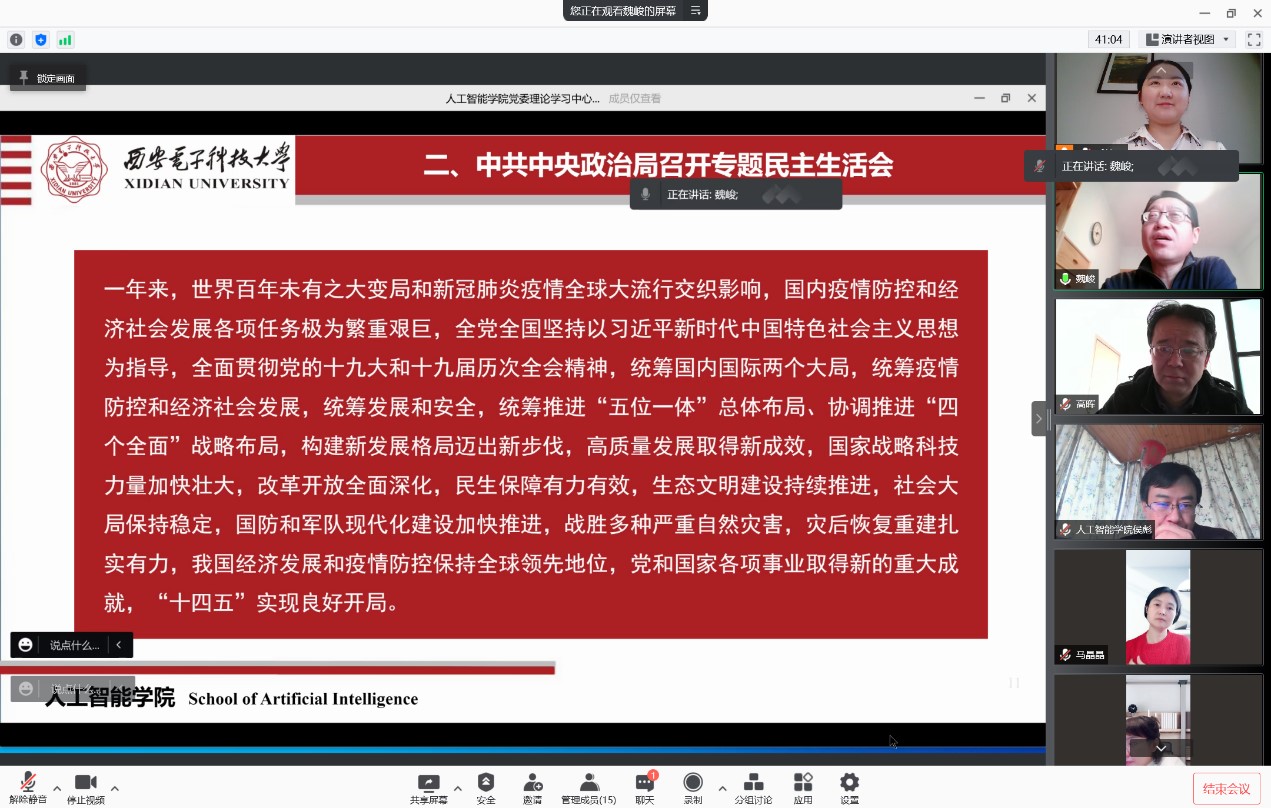 (通讯员:武津晶)1月12日上午,万象城awcsport官网召开党委理论中心组(扩大)学习视频会议,专题传达学习中共中央政治局党史学习教育专题民主生活会和党史学习教育总结会议精神,以及中央全面深化改革委员会第二十三次会议精神。学院党政班子、两委委员参加了集体学习,党支部书记、各系所代表等列席会议。会议由学院党委书记魏峻主持。