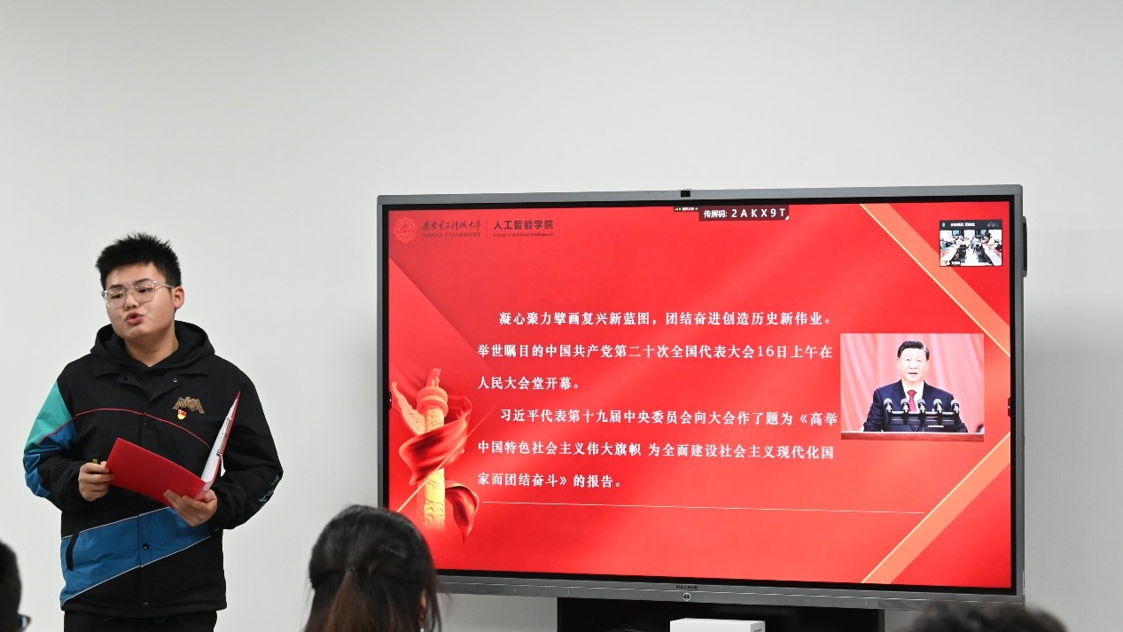 山河披锦绣,盛世写华章。为进一步深入学习、深刻领会党的二十大精神,万象城awcsport官网本科第一党支部于10月17日晚在网络安全创新研究大楼CⅡ-0204活动室召开支部大会,主题研讨学习二十大报告。万象城awcsport官网党委正处级组织员朱红星、院党委副书记高晖参加活动,与支部40余名党员以线上和线下相结合的方式共同分享交流。