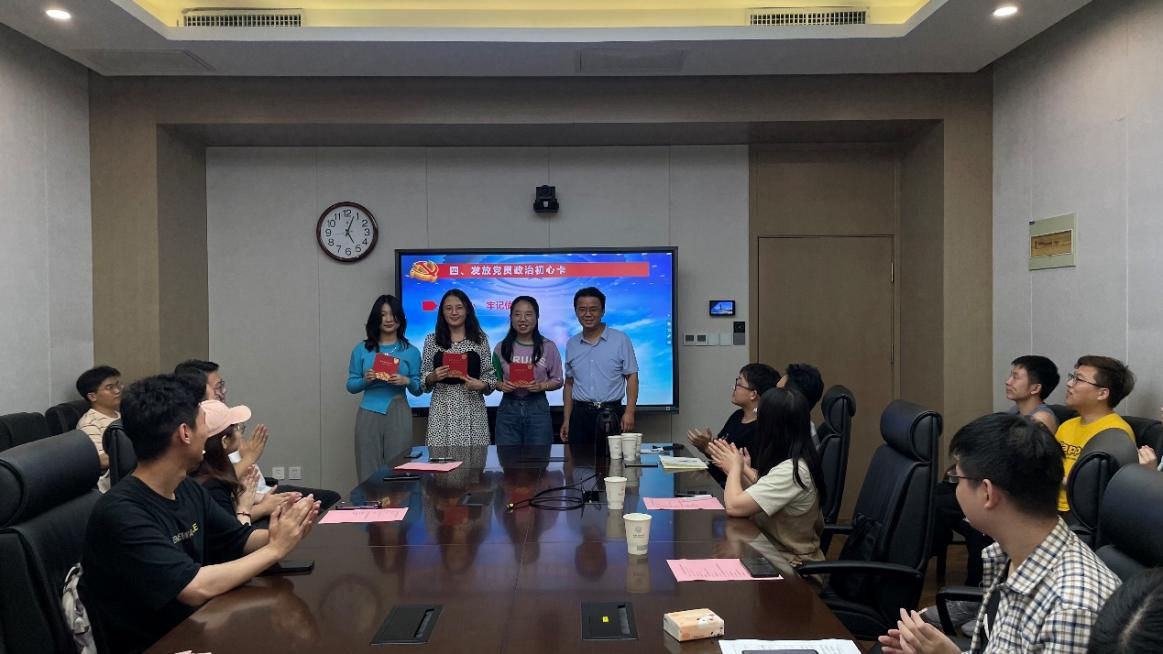 毕业研究生党员代表白改琴、陈阳同志分别重温了自己的入党志愿书,分享了自己研究生期间的收获与体会。白改琴同志分享了自己在疫情期间和支部成员担任志愿者的经历,让她更加深刻体会到作为一名共产党员身上肩负的责任与使命。陈阳同志结合入党志愿书与个人实际,分享了自己从班级团支书到成为一名共产党员一路的成长与收获。硕士毕业研究生党支部书记史伟、王璐分别回顾了自己在研究生阶段开展党支部工作的收获、体会,表达了对学院领导老师长期以来悉心指导、无私帮助的感谢,并对母校和学院的发展献上了深切的祝福。